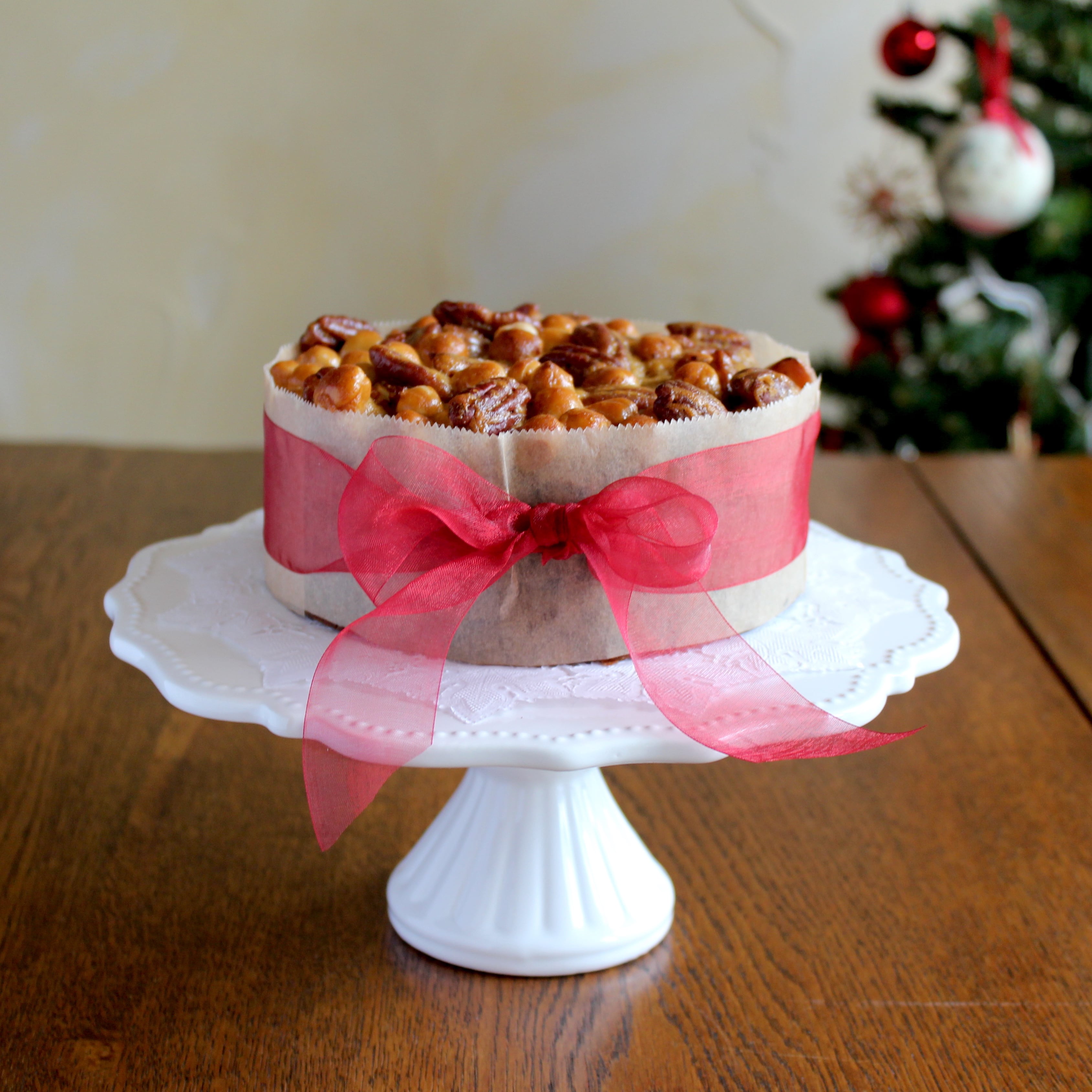 このケーキにはナッツがふんだんに入っており、ケーキの大半はナッツとドライフルーツでできています。店頭でお渡しする際に、手に持っていただいた重さに驚かれるお客様がほとんどです。